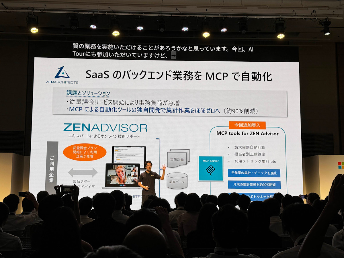 9/10に開催された Microsoft AI Tour Osaka にて、ゼンアーキテクツが運営する ZEN Advisor のバックエンドに MCP を活用した事例が紹介されました🎉