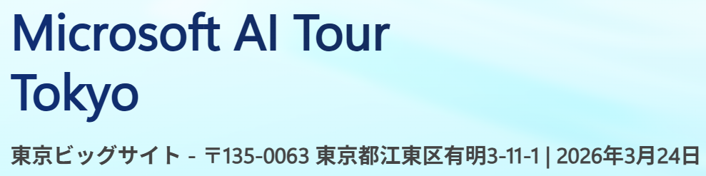2026年3月24日(火)に東京ビッグサイトで開催される「Microsoft AI Tour Tokyo 2026」に、弊社はスポンサーとしてブースを出展します。公式サイトから事前登録のうえ、ご参加いただけます。